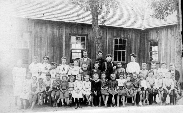 taken outside the 2-room frame schoolhouse in 1907, when his father,