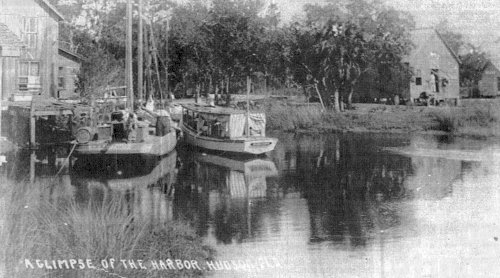 HISTORY OF PASCO COUNTYHudson![]() Articles about schools in Hudson are here and here. Pictures of Hudson are here. This page was last revised on Aug. 27, 2019. About 1868. “The first settlers that we have any record of settled there in 1868, Mr. Worley, Jess Hay, William Hay, and Joseph Hay. Later on W. D. Frierson, Bill Lang, William Bailey, Bill Tillet and Crocket Whiden, Sam Stevenson, Bud Stevenson, Allen Hill and Malcolm Hill, Hill House and J. W. Hudson made a scattering settlement along the coast.”—J. A. Hendley. May 25, 1869. According to a genealogy web site, Nancy Jane Branch is born at Hudson. Web sites indicate she was a daughter of John Laurence Branch and Eliza Wilder, and that she married Reuben Y. Walden. 1874. The fishing industry is started by William Lang 1877-78. A list of Hernando County schools includes the Lang school at Hudson. [A history of schools in Pasco County is here.] Late 1877 or 1878 or 1879. The Isaac W. Hudson family moves to what is now the site of Hudson, building a home near a large spring. He was advised by his doctor to move to the Gulf coast, hoping that the salt air would help his bronchial ailment. (Isaac W. Hudson Jr., who was born on Nov. 17, 1870, said he was a little over seven years old when they arrived. In 1978, the Florida legislature proclaimed April 28, 1978, to be Hudson Pioneer Centennial Day, based on the approximate date April 28, 1878, on which Isaac Hudson settled here. According to Webb’s Historical, Industrial and Biographical Florida (1885), the family settled there on Feb. 5, 1879. Mrs. Hudson’s obituary says they arrived in 1878.) J. B. Hudson recalled that the family settled on the Gulf in February 1878. A 1922 article in the Dade City Banner reports that they arrived in 1878. 1878. The Hudson Cemetery is established with the first burial that of Ida Melissa Hudson, the daughter of Isaac W. and Amanda Hudson, according to Historic Places. 1882. A Baptist church is constructed of pitch pine at the corner of Hudson Ave. and Main Street in Hudson. May 16, 1882. The Hudson post office is established. About 1883. Dr. James G. Guthrie begins a practice in Hudson. 1885. Webb’s Historical, Industrial and Biographical Florida reports: “H. W. Howse, J. W. Hudson, W. M. Lang, A. M. Bellamy, W. G. Frierson, A. W. Blanks, H. C. Bush, W. W. Chaney, W. J. Hilliard, James Worley, Jesse Hay, and M. D. Tillman [perhaps should be Fillman] are the more prominent residents and orange growers.” It identifies the postmaster as John W. Hudson. 1886. The Florida State Gazetteer (1886-1887) reports the population is 16. Hudson has Methodist and Baptist churches. H. C. Bush is justice of the peace; Frank Hudson is a carpenter; and J. B. Hudson is general merchandise. Farmers and growers are A. J. Bevis [Rewis?], A. M. Bellamy, A. W. Blanks, W. W. Chaney, J. H. Dicks, M. D. Filman, W. G. Frierson, J. T. Hay, J. T. Hudson, I. W. Hudson, H. H. Howse, M. H. Hurst, W. H. Jones, W. M. Lang, G. T. Lawler, L. E. Moseley, W. S. Quartermous, C. W. Weaver, A. J. Rewis. Feb. 19, 1886. William Stanton Quertermous (1829-1887) writes, in a letter mailed from Hudson: “ ...we have had nice spring weather ever since with the exception of a few slight frosts to taper off I have watermellons up about four acres planted I have suckseeds in clearing about three acres more of the stock for potatoes I will bud off the balance and part it in corn and peas every thing is beginning to assume its natural appearance the orange trees are not materially injured it is thought the next crop of oranges will be a larger one the lemons and guavers are beginning to put up they were killed to the ground ... we still hear that our Railroad is to be built specialy the Florida Southern I understand will build that road from Brooksville to point Penallas this summer it will run about six miles east of me they have made the survey but I do not think anyboddy Knows what they will do thats our railroad co that never tells nothing They have got the money to do as they please...” [More information on Quertermous is at Jeff Cannon’s web site here.] Nov. 9, 1886. The Bee Tree post office is established, near the intersection of Hudson Avenue and Hays Road. [It was discontinued Nov. 19, 1888.] 1888. Dr. James Martin Posey begins a practice in Hudson, according to the Directory of Deceased American Physicians, 1804-1929. 1889. A cemetery is established in what became the town of Vereen. [The cemetery is located on Hudson Avenue, one-half mile east of Hicks Road. The historical marker reads: “...Stephen P. Douglas who died in 1889 is the earliest marked burial. In 1890 Abraham and Susanna Bellamy donated land to the Methodist Episcopal Church, in memory of her parents Joseph and Susanna Vereen. A building completed in 1891, served as the community’s church and for some years, as a public school, until it was destroyed by a forest fire in 1920.” In 1906 a newspaper article mentioned Mrs. J. H. Davidson, of Vereen, Fla., and a 1908 directory listed J. H. Davidson as a railroad superintendent and purchasing agent.] Apr. 18, 1889. The Savannah Morning News reports, “The store and postoffice at Hudson, Pasco county, was totally consumed by fire one night last week. The mail and everything connected with the office were burned.” Aug. 20, 1897. The Tampa Morning Tribune reports that Tillman Ozlas of Hudson was in Tampa yesterday on a business trip. Dec. 18, 1898. Rev. J. M. Mitchell is appointed pastor of the Hudson Methodist Episcopal Church, South, according to a church register. [The register shows that subsequently Rev. M. T. Bell served until Dec. 17, 1900, and Rev. Tom McMullon served until Dec. 1901. Other pastors were Rev. W. F. Fletcher (1902), Rev. R. H. Barnett (1903), Rev. W. H. F. Robarts (1904), Rev. K. M. Albright (1905), Rev. K. D. Jones (1906), Rev. J. M. Dieffenwierth (1907), Revs. Combs, Willis, and Mitchell (sharing, Dec. 1908 to Dec. 1909), Rev. J. D. Fri