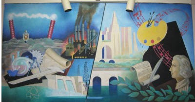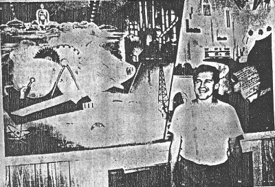 ![]() Caption: PROUD ARTIST—Artist George Smith poses before the mural he painted in 1948 when he was 16 and when what is today Zephyrhills Junior High was then the main high school building. |
