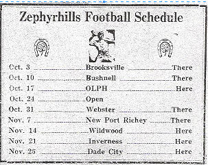 HISTORY OF ZEPHYRHILLS HIGH SCHOOLHighlights of 1948Events of the Year. 1947-48 was a year of improvements for the Zephyrhills High School. First off the bat was the organization of the Quarterback Club, headed by Mr. G.C. Rosenvold and Mr. W. D. Skinner. Their first project was a lighted football stadium. Mr. I. A. Krusen donated all equipment for building the field. Next in line was the new annex to the ZHS building for the third through sixth grades. The new basketball court was the next of the many improvements made to the campus during the year. Then came the smash hits of the year, the Senior class play, Brother Goose, presented January 29th, and the junior class play, He Couldn't Marry Five, presented March 15th. Both were hilarious comedies. The Seniors presented as their gift to the school an opaque projector to be used for visual education.