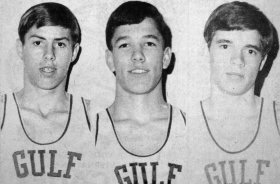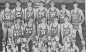 1967-1968In February 1968 the team scored 104 points in defeating Hernando High School.The team record was 16-8 record, the best since 1963. The yearbook reported that the team scored more than 90 points in six games, "with one record-setting game of 104, to make this the highest scoring season in Gulf's history. And with seven returning lettermen, Coach Tom Weightman has good reason to look forward to an even better season next year."
