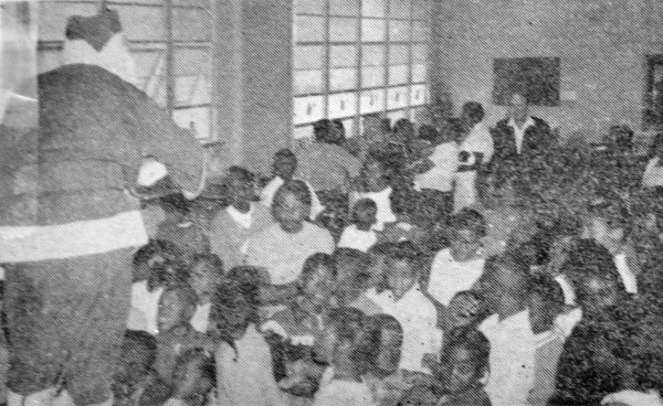 ![]() A photo from the Dec. 27, 1962, New Port Richey Press with this caption: “Santa Claus is pictured above passing out gifts to the children of the new Booker T. Washington school on Pine Hill Road in Port Richey at the second annual Christmas party last Friday sponsored by the New Port Richey Rotary Club. The youngsters were also treated to a noon meal by Rotarians, prepared by the Hacienda staff.”