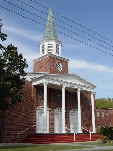 First Baptist Church (1976)The following is an article is taken from East Pasco’s Heritage (1976). By JOHN L. EPTING Oak Grove Baptist Church was organized before 1870 at Fort Dade community. Its cemetery later became Dade City Municipal Cemetery. On Nov. 14, 1891, ten leading families of Oak Grove organized College Street Baptist Church on the present site in Dade City. The street was named for South Florida Normal Institute, established in 1887, which operated for many summers in Dade City School building. The church also met in the schoolhouse until its building was completed in June 1892. In 1895 Oak Grove dissolved and the rest of its members came to College Street Baptist Church. Baptists then were very strict, requiring moral lives, regular attendance, and financial support from members. Slackers who did not mend their ways were dropped from the church roll. In 1899 and again in 1905 the church building burned and had to be rebuilt. In 1905 the church ladies bought a house east of the church for a pastorium. In 1919 a basement and Sunday School annex were added to the church. In 1940 an old church building was bought and moved behind the church for a fellowship hall and classrooms. In 1944 the street had been renamed Church Avenue, and the name of the church was changed to First Baptist Church of Dade City. [Note: The name of the church was actually changed in 1945. College Street was apparently renamed 14th Street in the 1920s. -jm] In 1950 the first units of the present brick building were begun. The first pastorium was moved to the corner of Meridian and Thirteenth St. to make room. The present sanctuary and east classroom wing were completed in 1955. The whole block was secured, and the second pastorium built north of the church. In 1960 the chapel and west classroom wing were completed. Radio ministry was begun in 1958. Fort Dade Mission was started in 1942, established as a church in 1952, and helped until 1972. Ridge Manor Mission was started in 1974. First Baptist Church shared its office and classroom space with Pasco-Hernando Community College for two years until the college campus was completed. A Senior Citizens Group meets at the church monthly. The W. M. U. Crisis Committee gives emergency aid to community residents and transients. Resident membership in First Baptist Church is now 400 families, with average Sunday School attendance 300. Pastors who have served First Baptist Church are: P. C. Drew, 1892; W. M. Wamboldt, 1893-96; W. E. Bogart, 1897-99; George T. Leitner, 1900-05; W. D. Tumley, 1906-10; W. A. Burns, 1910-13; T. S. Hubert, 1913-15; Ben Brooks, 1915-16; Milton M. Bales, 1917-18; O. E. Tebow, 1918-21; B. G. Smith, 1921-24; J. N. Vandiver, 1924-27; W. K. E. James, 1929-31; E. L. Andrews, 1931-35; Jimmy Parrish, 1936-38; Albert A. Stulck, 1938-42; Elbert C. Tyner, 1942-60; Lamar Brooks, 1960-64; Paul Wonders, 1965-70; Thomas N. Langley, 1970-72; Thomas C. Broomall, 1972 to the present.