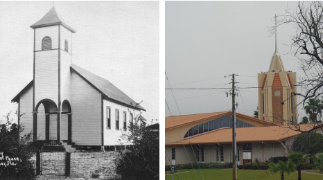 A Brief History of Our Lady Queen of Peace Catholic ChurchThis article was taken from the church web site in 2017. The first Mass in the western part of Pasco County was celebrated in 1913 by Father Felix Ullrich, O.S.B., in the home of Mr. and Mrs. James H. Casey, who lived on Washington Street and Circle Boulevard, at that time the center of the town of New port Richey. The Casey’s dining room table was used for an altar and Ms. Casey dressed it in her finest linens for the important occasion. In the early day three families attended Mass, which was offered once a week on the day Father Felix could make the trip from St. Leo Abbey. Father Felix remained the priest-charge of this mission until 1932. New Port Richey at the time of the First World War was a town of about 200 persons. Within a few years the few Catholic who lived there tried to build a church. Two lots were purchased on Washington and Second Streets, about three blocks from the center of town. With the aid of the Catholic Extension Society and through the efforts of Father Felix the building of a small frame church was started. On March 9, 1919, the church was ready and dedicated by Abbot Charles, Mohr, O.S.B., assisted by Father Felix, with Louis and Vincent Roy as altar boys. Mrs. Roy played the piano. This church was an attractive white frame building with a steep Gable roof and a bell tower over the front entrance. It was built by Louis Lupine and a Mr. Copeland. By 1920 there were seven Catholic families in the town. In September 1921, a severe hurricane ripped through New Port Richey. The belfry of the church was knocked to the ground and the church itself was lifted from its foundations. While originally it faced Ohio Avenue, after the storm it faced Washington Street. Father Felix was in the sacristy at the time the storm struck and he was unhurt. It was decided to reinforce the foundation and to rebuild the church on the original site, but without the belfry. Several additions were later made to increase the size of the church. By 1929 it had reached its present size, with seating capacity of 180. The sacristy now is carpeted in green with green drapery behind the altar. There is a large white Altar of Reservation and a smaller Altar of Sacrifice, both constructed of wood. A large wooden cru fix hangs above the high altar. Father Felix took up permanent resident in New Port Richey shortly after the storm. The sacristy was his temporary home until a rectory was built next to the church in 1922. At this time there were thirteen Catholic families in the town, among whom we may name Paul and Anna Thiel, William and Mary Casey, Mrs. Frank Grey, Joseph and Anna Weiskopf, Peter Kissel, Elizabeth Czaska, Mrs. Oscar Hermes, and Mrs. Frances Roy, Mr. and Mrs. Peter DeCubellis, Mr. Angelo DeCubellis, Mr. and Mrs. Janivieeer DeCubelis, Mr. and Mrs. Frank Lysek and Mr. and Mrs. Martin VanPoucke. The first meetings of the Rosary Altar Society of the mission were held in the homes of the ladies. Mrs. Frank Grey was its first president. Card parties and other activities were organized to try to raise a few dollars to care of the living expenses of Father Felix. A roof for a rectory was purchased April 10, 1922 and later the same year Louis Lupin constructed the rectory, and attached a story and a half frame house with a multi-gabled roof. The attic was made into an apartment and rented to help provide revenue for the parish. There was a notable “Movie Colony” along the Cotee River in the 1920’s. Among the celebrities were Tom and Jim Meighan, the great golfer Gene Sarazen, and Edna Wallace Hopper. These visitors contributed generously toward the building of the parish hall, which today is a consoling source of income for the parish. Through the efforts of Mrs. Elizabeth Kissel, donations were received, and the hall was started on January 22, 1931. It was completed on June 20 of the same year. Some of the workmen were Peter Kissel, Paul Thiel, a Mr. Breslin, and others. The donations amounted to $1,209.97 and the cost of the building was $1,128.39. This hall, a large white frame 70' x 29' building with green shingle roof is still in excellent shape today. It has kitchen families, a stage, a large wood floor for dances and other activities, and it is capable of seating 170 persons for Sunday Masses. It now has jalousie windows for added light and ventilation. On January 6, 1932, Father Felix was appointed Spanish instructor at St. Leo College preparatory School and was replaced by Father Paul Keegan, O.S.B. Father Felix had spent nineteen years in the town, had gained many friends, and was well liked by both Protestants and Catholics. The following comments are taken from a recent history of the area: “There were clergymen in New Port Richey whey whose outstanding service and uplifting must come in our reflections of the past generation. Apart, in a sense, in their denominational affiliations, yet close in friendship were Father Felix of the Catholic Church and the Reverend B. M. Pack of the Baptist Church. They were loved by all, both Saint and Sinners, and fraternized in true Christian fellowship.” (Ralph Bellwood, Tales of West Pasco (Hudson, Florida: Albert J. Wakovec, 1962), 45). This gives some indications that the relationships between the few Catholics and the rest of the populations were amiable. Father Paul remained in charge of the church in New Port Richey from 1932 until 1946. During his tenure, on Palm Sunday, 1942, some boys were playing ball in the street in front of the church when suddenly they saw smoke pouring out of the church. Young Wilson Cornell and the other boys went into the rectory to wake Father Paul. Fortunately, the blaze was stopped before too much damage was done; only the rafters were scorched. The cause of the fire was defective wiring. Afterwards, the ladies of the mission raised funds to repair the damage and to repaint the interior. In 1946 Father Maurus Cook, O.S.B replaced Father 