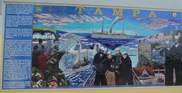 On February 3, 2018, the Tampa Bay History Center held a commemorative 100th anniversary memorial for the victims of the Tampa, which I attended with my wife, sister, and cousin Margaret Sumner Rials and her husband. It was a very moving ceremony that included the dedication of a mural, music by the Coast Guard chorus, and the full crew of the current USCGC Tampa, which was harbored nearby in Tampa Bay. Speakers included Admiral Karl Schulz, commander of the U.S. Coast Guard Atlantic, and Lieutenant Commander Laura Holt from the British Royal Navy.